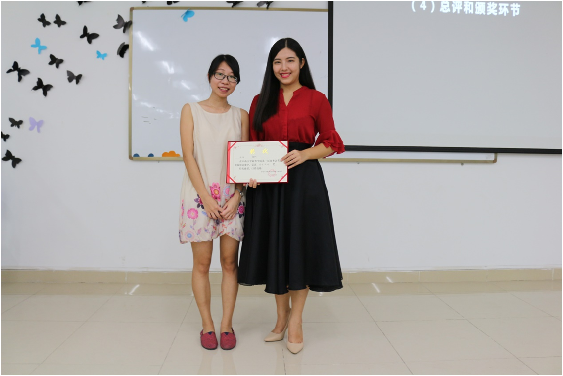 通过精彩的方案阐述和紧张的答辩环节之后,进入评委评分环节。经过评分计算和评委们商量,最后,梁碧娴同学获得最佳ppt设计奖,杨瑾同学获得最佳演讲奖,王巧妹、梁碧娴、杨瑾三位同学获得团体一等奖,何惠珍、杜香凝、黄俊铭三位同学获得团体二等奖,古泽云、王彬宇两位同学获得团体三等奖;谢迪君、梁靖琨、吴天怡三位同学获得团体优秀奖。