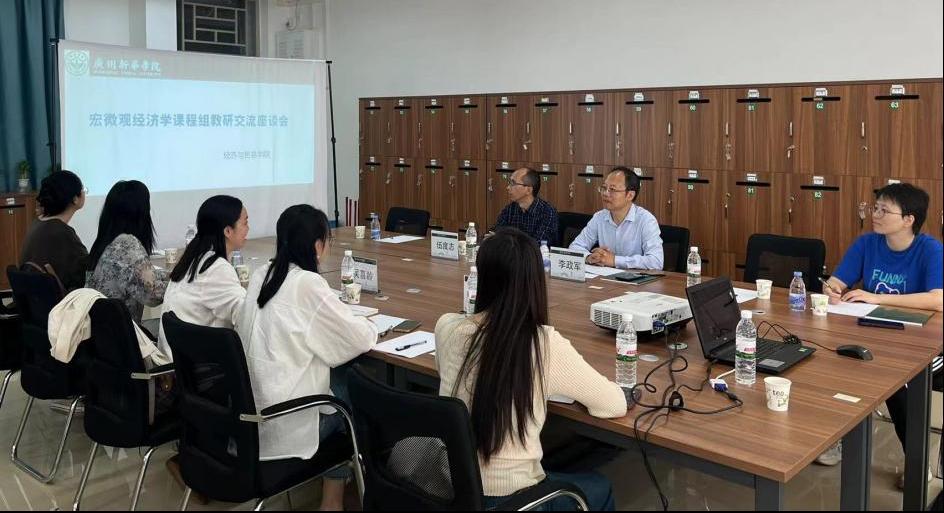 11月12日上午,重庆财经学院经济学院院长李政军教授、伍度志教授一行来访suncitygroup太阳新城,就微观经济学、宏观经济学课程教学及教研情况展开调研。本次研讨会在格物楼4-312室召开,由广州新华学院suncitygroup太阳新城副院长吴喜龄主持,经济学专业副主任张才华与微宏观经济学课程组教师代表参会。