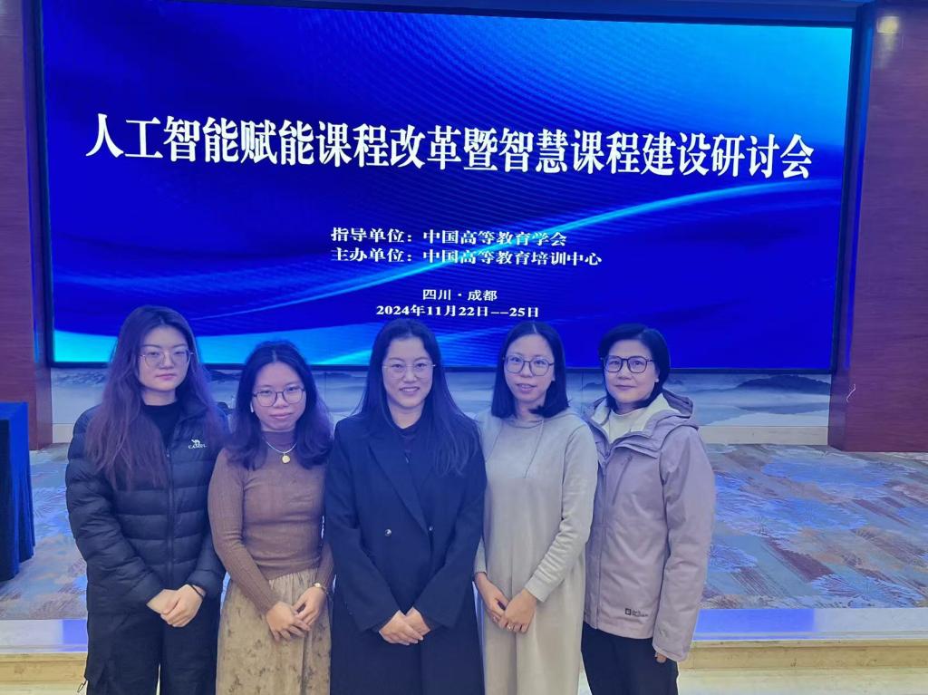 2024年11月23日,由中国高等教育培训中心举办的“人工智能赋能课程改革暨智慧课程建设研讨会”在成都赛仑吉地大酒店拉开帷幕。人工智能正在改变社会,高等教育迫切需要在育人理念、办学路径、教学模式、学习范式、评价方式等方面进行深层次变革,塑造“智能+”高等教育新生态。我院一流课程团队朱国平老师、钮佳佳老师、蔡佳红老师、王利莹老师、王欣老师等代表一流课程和实验项目参加了此次研讨会。