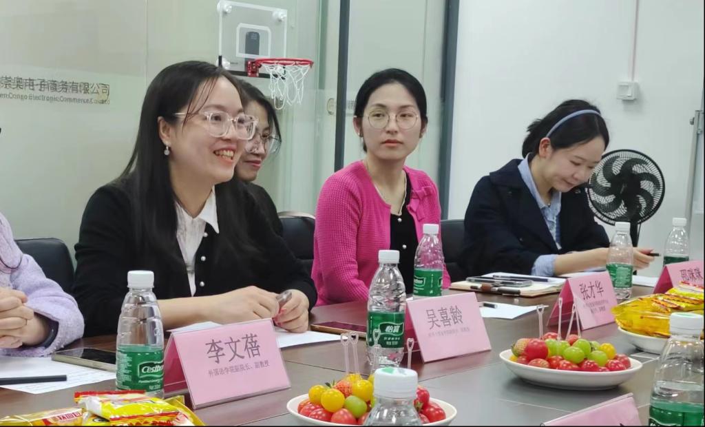 为深入贯彻落实国务院关于促进高校毕业生就业创业的相关政策,推动校企合作,提升毕业生就业质量。2024年3月5日,广州新华学院经济与贸易学院吴喜龄副院长携经济学专业副主任张才华,经济学骨干教师邵咪咪,国际经济与贸易骨干教师李亚芳,同外国语学院一行前往深圳崇奥电子商务有限公司开展访企拓岗促就业专项行动。