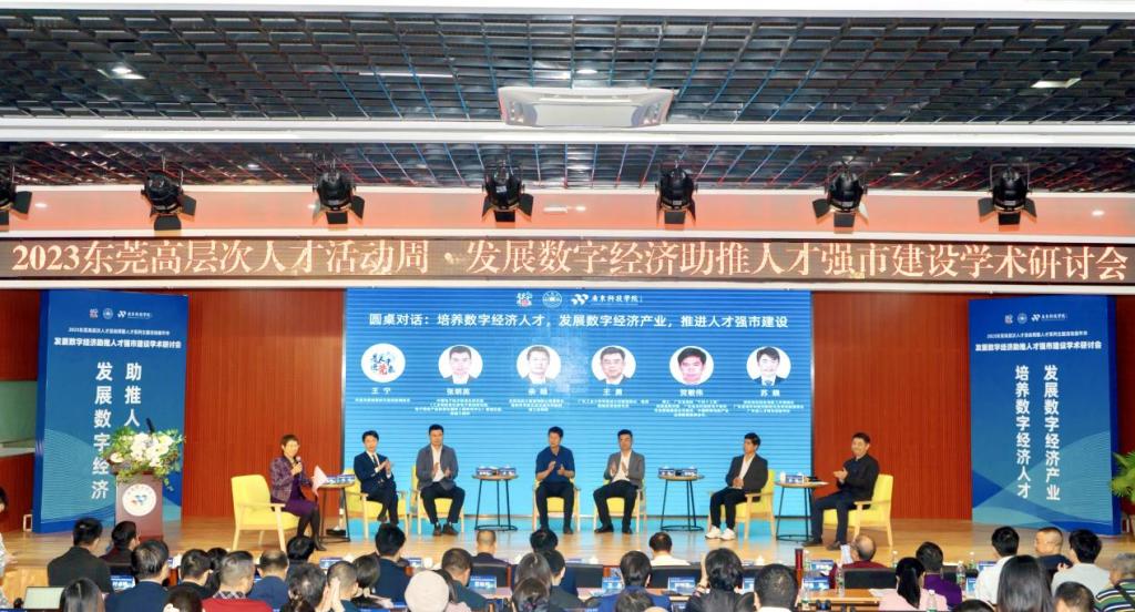 东莞市委政策研究室四级调研员王宁,中国电子技术标准化研究院(工信部电子第四研究院)管理总监、高级工程师张明英,东莞先知大数据有限公司董事长、北京交通大学教授余旸,广东工业大学华南设计创新院院长、鹏城实验室研究员王勇,广东财经大学教授、广东省本科高校电子商务专业教指委副主任贺敏伟,深圳湾实验室党群工作部部长、广东省青年科技创新研究会常务副理事长苏晓等围绕“数字经济人才培养,数字经济产业高质量发展和人才强市建设”开展圆桌对话交流和研讨。
