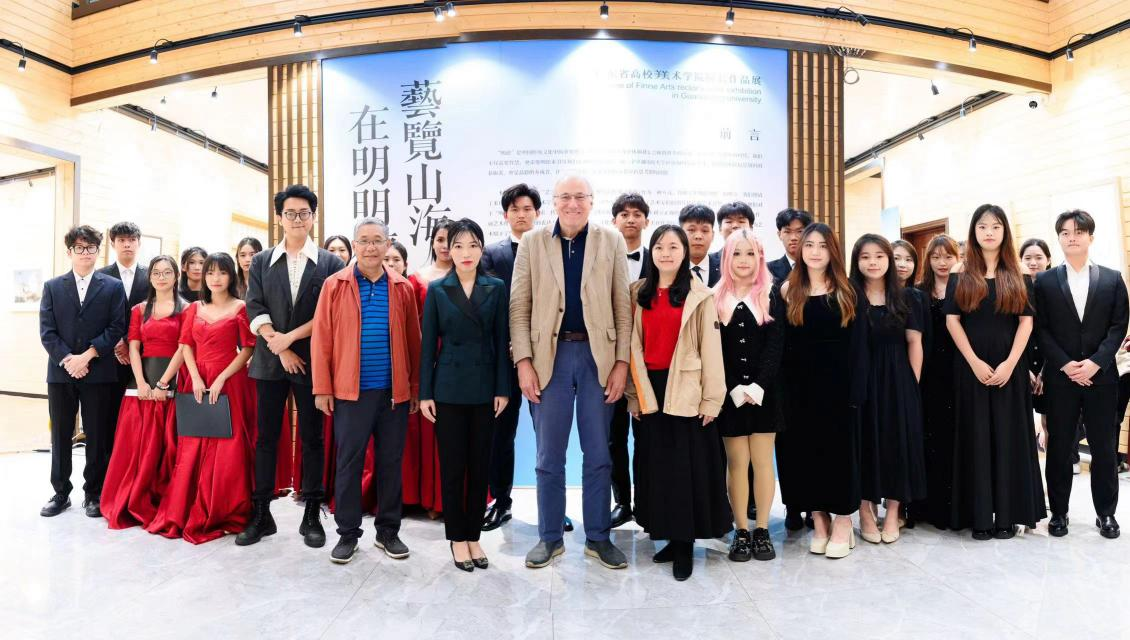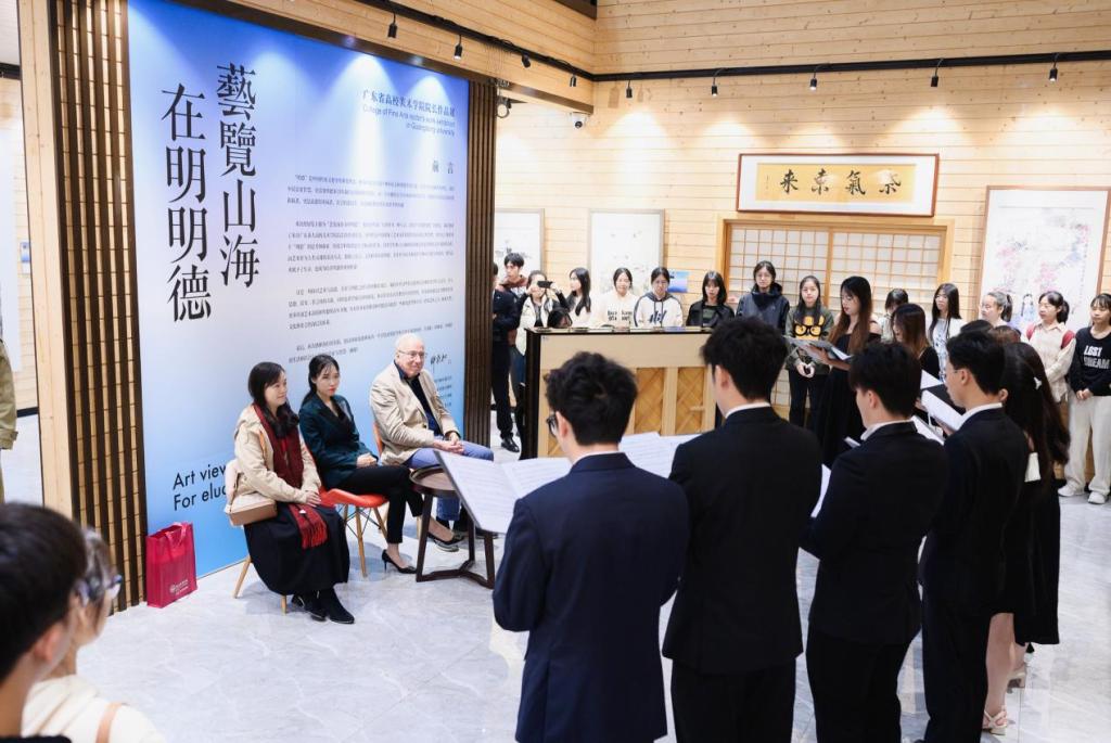 刘婉莉(霖霖)副校长和吴喜龄副院长陪同Ronald Wayne Anderson教授参观了近期展出的“艺览山海 在明明德——广东省高校美术学院院长作品展”。刘婉莉(霖霖)副校长热情地为Ronald Wayne Anderson教授介绍展出画作,Ronald Wayne Anderson教授表示赞叹。
