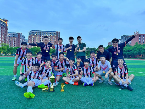 而在6月16日下午进行的决赛中,尽管天空下起了绵绵细雨,球场草地湿滑,但这抵挡不住队员们的足球热情和对冠军的渴望!经过激烈的角逐,最终经贸院队以1:0战胜了公治会计联队,并最终在本届比赛以进9球失0球且保持全胜的优异表现,夺得第七届“新华杯”院系八人制足球赛的冠军!