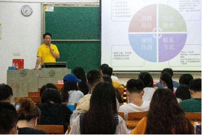 稍后,利用本次宣传讲座的机会,何锐经理也从银行整体概况、合作交流情况、未来发展建设等方面向在座的同学们介绍了浙商银行东莞分行,他表示,正值毕业季,欢迎即将实习的大三同学积极投递简历。最后,浙商银行东莞分行的领导们给现场同学进行了简短的答疑交流环节。同学们就职业发展、晋升道路、薪资待遇等进行踊跃提问。相关负责人给每位提出问题的同学都给予了详细的回答并给出建议。