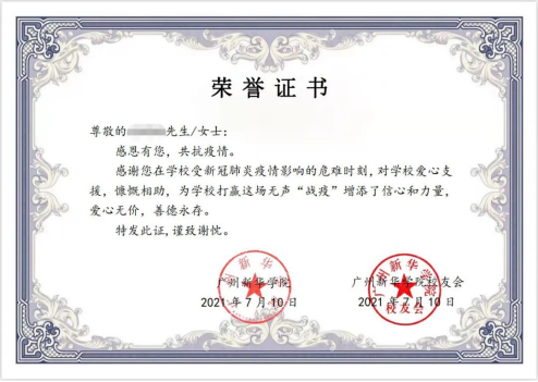 2.在广州新华学院校友会公众号后台留言“姓名+捐赠证书领取”。