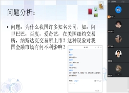 如曾晓华老师以“利息度量---单利和复利的累积函数”课堂教学为例,在教学过程中不断创设问题的情境,提出教学要点,结合知识解读我国为提升综合国力和实现共同富裕而制定的政策方针,激发学生的爱国情怀,引导学生要敬业,热爱劳动,热爱工作,为实现中国梦奉献力量。在《证券投资实务》课程上,梁昌洲老师把近年来的国内外时事热点与课本理论相结合,开展关于维护国家金融市场安全的课程思政主题讨论,包括但不限于:后疫情时代我国股票市场改革,数字经济发展机遇和挑战,国内股市如何留住知名上市公司等。有趣的话题让学生们摆脱上面授课时的“羞涩感”,踊跃参与到讨论中,甚至有学生打开麦克风,发表了观点,好评如潮。