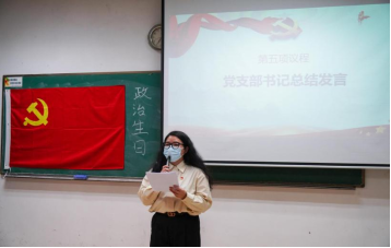 最后,余伊彤书记对此次大会进行总结。首先,余伊彤老师提到“每位党员都有两个日子值得牢记,一是自己的自然生日,这标志着对生命的尊重,时刻提醒我们要感恩生活;二是政治生日,这标志着自同志们入党之日起对党的忠诚和信仰,时刻提醒我们不忘初心、牢记使命。其次,余伊彤老师充分肯定了支部成员的工作积极性。最后,余伊彤老师对今后的党员发展提出三点要求:“一是要坚定理想信念,锻造过硬的本领;二是勇于攻坚克难,发扬进取精神;三是要牢记初心使命,走好新时代长征路。”并以此希望同志们珍惜韶华,奋发有为,自觉树立和践行社会主义核心价值观,勇做时代的奋进者、开拓者、奉献者,为实现中国梦奉献智慧和力量。