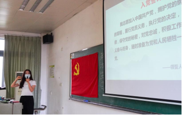紧接着,第二项议程是重温入党誓词;陈琳同志上台带领与会同志一起面对党旗,重温入党誓词;在陈琳同志领誓下,铿锵有力的宣誓声响彻教室,让现场所有人都深受感染,仿佛回到了申请入党的那一刻。
