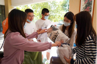 现场,同学们热情高涨,积极配合有序地排队,准备将手中的衣服交给志愿者。同时,志愿者也认真仔细的检查同学们手中的衣服,登记捐赠衣物同学的姓名和联系方式。