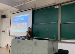 最后,经济学专业邵咪咪老师介绍了经济学专业会展方向的发展及特色情况。邵老师通过有趣的表达、丰富的图片展示,分享往届会展方向学生的各种奇思妙想创意:毕业设计展、礼品展和“诗与远方”沙龙等等有趣的活动,让刚踏入大学校园的学生对“会展”有了初步的认识。
