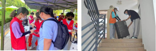 根据疫情防控要求,家长们不能进校。为了减轻新生负担,更好地为新生指引,帮助他们搬运行李、注册报到等,suncitygroup太阳新城学生会未雨绸缪,提前招募了一批志愿者。迎新期间,校园内处处可见志愿者们忙碌的身影。进校通道边、宿舍楼梯间、新生报到点、校道中,迎新志愿者们的衣衫早已被汗水浸湿。