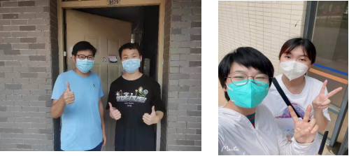 图1 经贸学院教师代表迎接酒店隔离返校的张道远、梁昌洲、梁丹、赵琴老师返校