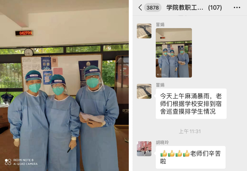 还有懂事的同学们,平时那么爱玩爱聚的他们,疫情来临时,严格服从学校安排,静静地待在宿舍,除了核酸检测外,从不迈出一步。去隔离酒店的同学也一样,勇敢坚强。一个可爱的小姑娘隔离前不断跟我说:“老师,你放心啊,我没事的,我不怕”。可我知道,她当晚害怕得睡不着。还有一个励志的小可爱,她趁着隔离,学会PS这项新技能;还有那个自称身体空前棒的;那个老师需要时,随时在的……
