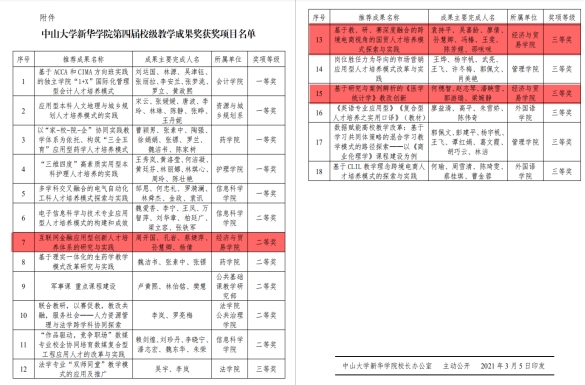 suncitygroup太阳新城的《互联网金融应用型创新人才培养体系的研究与实践》荣获二等奖,《基于教、研、赛深度融合的跨境电商视角的国贸人才培养模式探索与实践》、《基于研究与案例辨析的<医学统计学>教改创新》荣获三等奖,具体见下图。