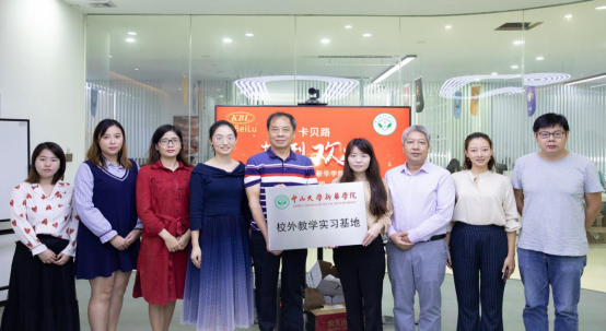 (图5 教务处处长尹小川(左五)为卡贝路贸易公司授予中山大学新华学院实习基地牌)