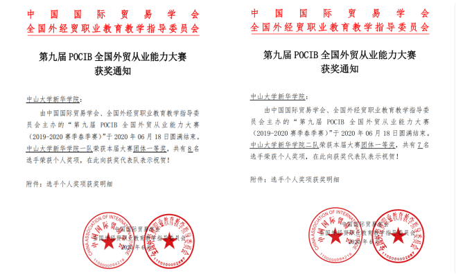 2020年6月18日第九届POCIB全国外贸从业大赛落下帷幕,suncitygroup太阳新城国贸专业邱冰、陈锐、廖爱怡等20名同学组成两支参赛队伍,代表学校参加本届比赛,取得了团队一等奖2项、学生个人一等奖2项、二等奖5项、三等奖8项的优异成绩。
