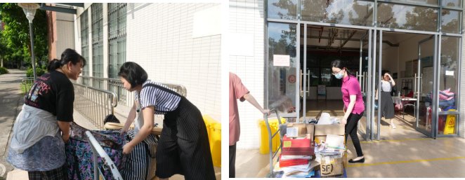 校门口,suncitygroup太阳新城的老师亲切地为毕业生指引,协助他们完成防疫检测。稍后,老师们为学生送出毕业大礼包,安排学生有序、安全地办理离校手续。为减轻毕业生负担,辅导员老师顶着骄阳,进入宿舍,帮毕业生搬行李。