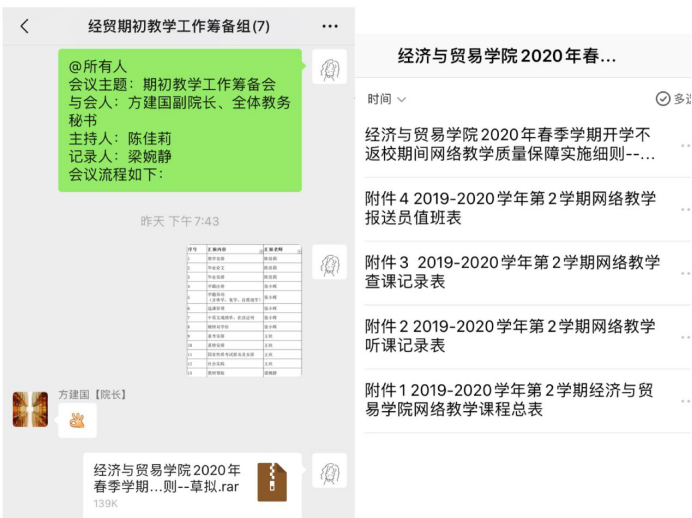 图:方建国副院长及全体教务秘书利用微信平台进行期初教学工作筹备的讨论
