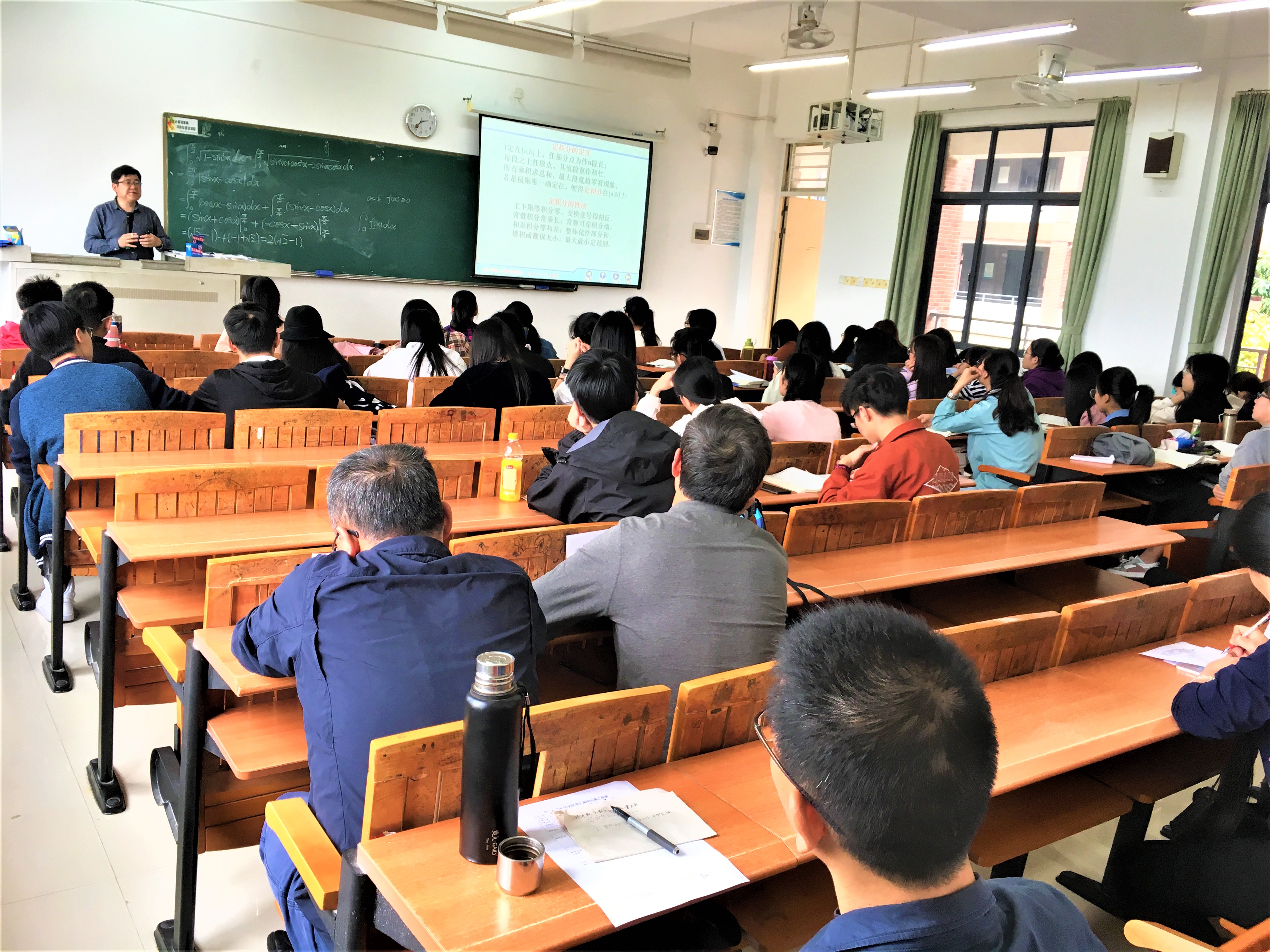 3月13日下午,高数教研室副主任郭游瑞和周国军、王茂玲等老师共同聆听了由高数教研室主任徐应祥老师讲授的18级“逸仙班”高数课。逸仙班的学生文理科生兼有,故学生的数学基础和培养目标存在极大差异,这就增加了授课的难度。为解决该问题,徐应祥老师采取了特殊的教学方法,深入浅出地将知识点拆分,使其变得浅显易懂。听课老师们纷纷评价,认为徐老师知识渊博,谈吐优雅且幽默,用心教学,是高数教研室全体老师学习的榜样。