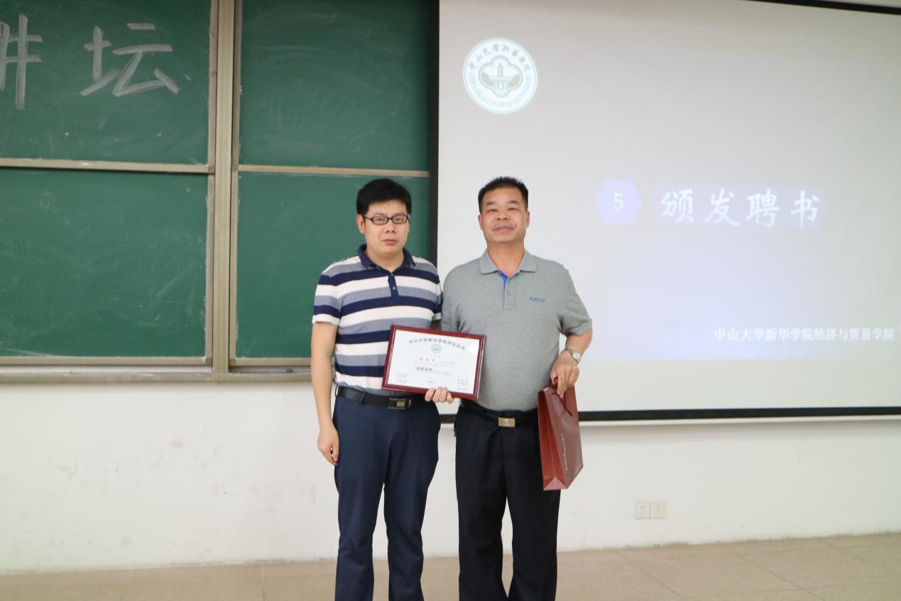 图3:李海峰老师为陈汉斥所长颁发聘书