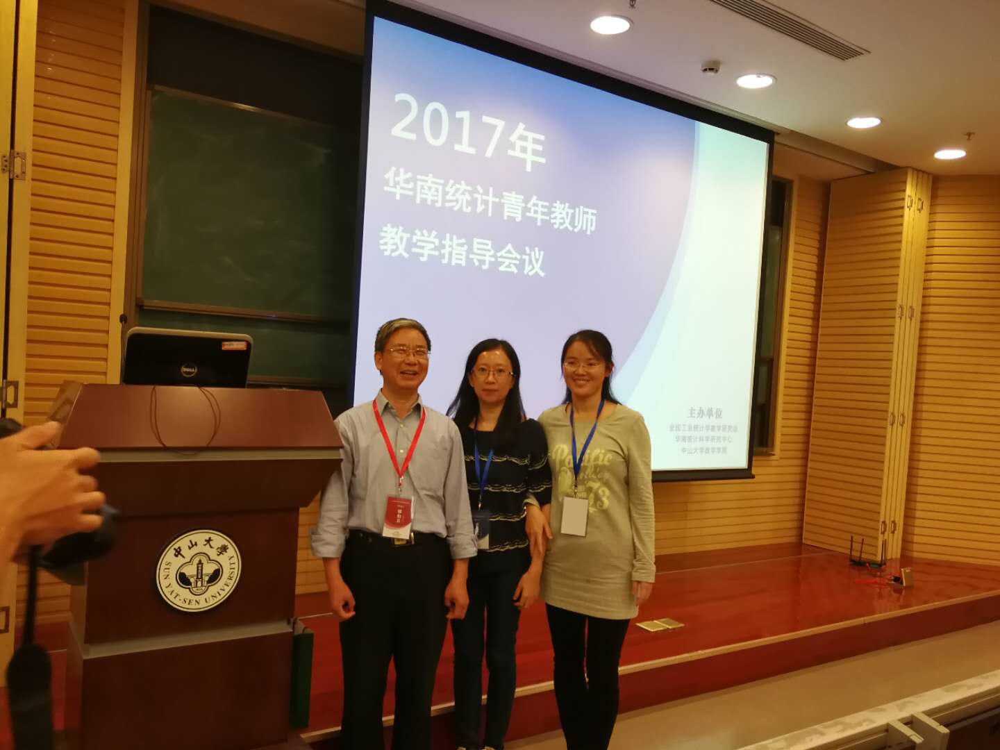 动统计学科在华南地区的进一步发展,提高高校统计学教学质量,培养优秀的统计学人才,由全国工业统计学教学研究会、中山大学华南统计科学研究中心、中山大学数学学院联合主办的2017年华南统计青年教师教学指导会议于2017年11月10日-12日在中山大学南校区举行。我校suncitygroup太阳新城经济统计学专业带头人王学钦教授、专业教师陈敏琼、张曦文老师参加了本次会议。