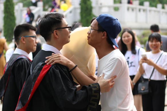 在毕业照现场,还有这样一群人,他们是来自各地的亲友团,有家人、有亲戚、有朋友……他们不远千里而来,献上鲜花和礼物,只为共同见证毕业生们人生荣耀的时刻。