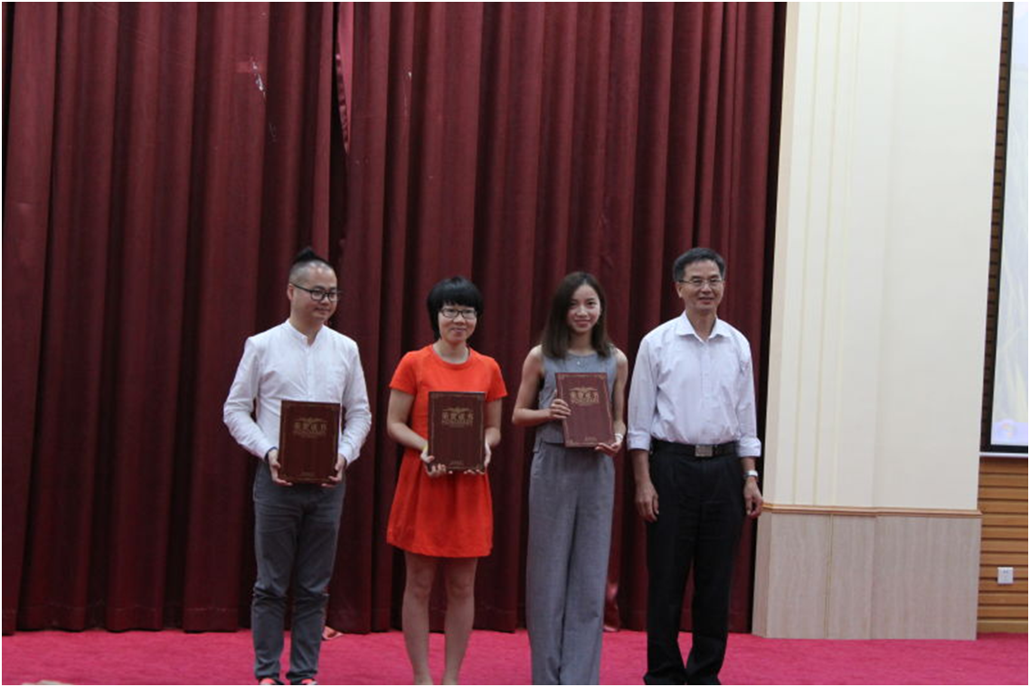 (王庭槐院长为获得经贸系杰出贡献奖的教师颁发荣誉证书)