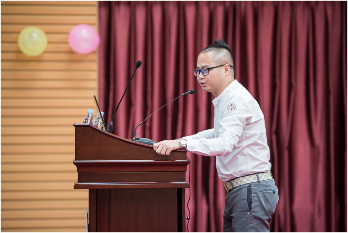 随后,校友代表林扬波上台发表获奖感言,对经贸系这十年的变化感慨万千,并祝经贸系发展地越来越好,他希望学弟学妹学业有成,有一副“莫愁前路无知己,天下谁人不识君”胸怀。