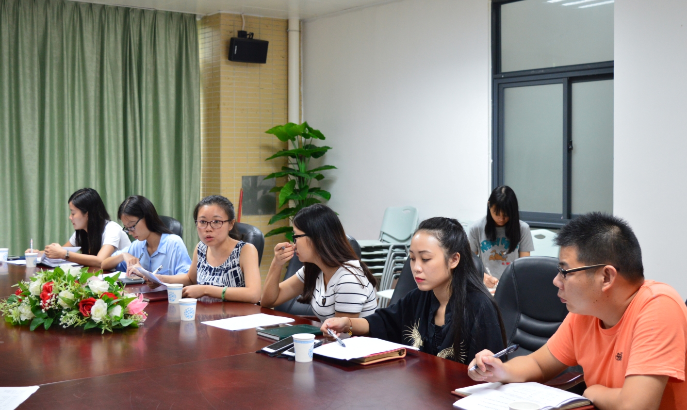 2016年9月7日,经济与贸易系2016级新生迎新工作会议在东莞校区召开。我系副主任黄国龙、办公室副主任李海峰、办公室副主任潘怡吉、教务主管杜碧莹以及全体辅导员老师出席会议。会议由李海峰老师主持。