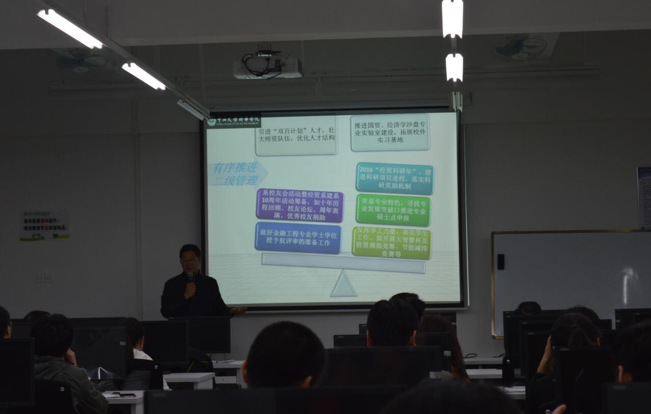 系主任袁持平对经贸系2015年所取得的成就进行总结