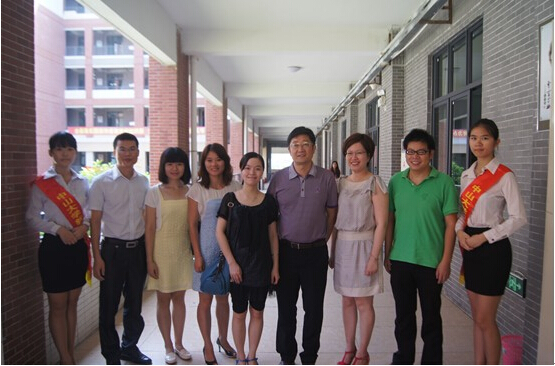 图为经贸系袁持平主任(右四)与出席国贸专业教育会的老师们合影