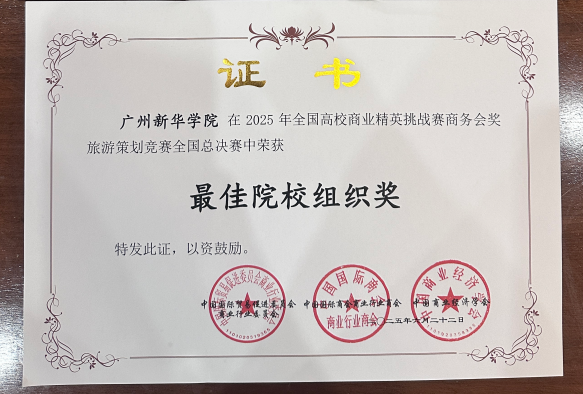 在学院的高度重视下,经济学专业林婧、张彩燕、林彤彤三位老师指导参赛学生队伍反复打磨项目书,进行方案细节修改和模拟演练。最终由林婧老师带队,八位学子与中山大学、暨南大学、华南师范大学等全国多所高校学子同台竞技,凭借扎实的专业功底和出色的临场表现脱颖而出,拿下优异的成绩。赛事评委会对我校的组织工作给予高度评价,表彰了我校在赛前培训、过程指导和服务保障等方面的突出表现,并授予“最佳院校组织奖”。