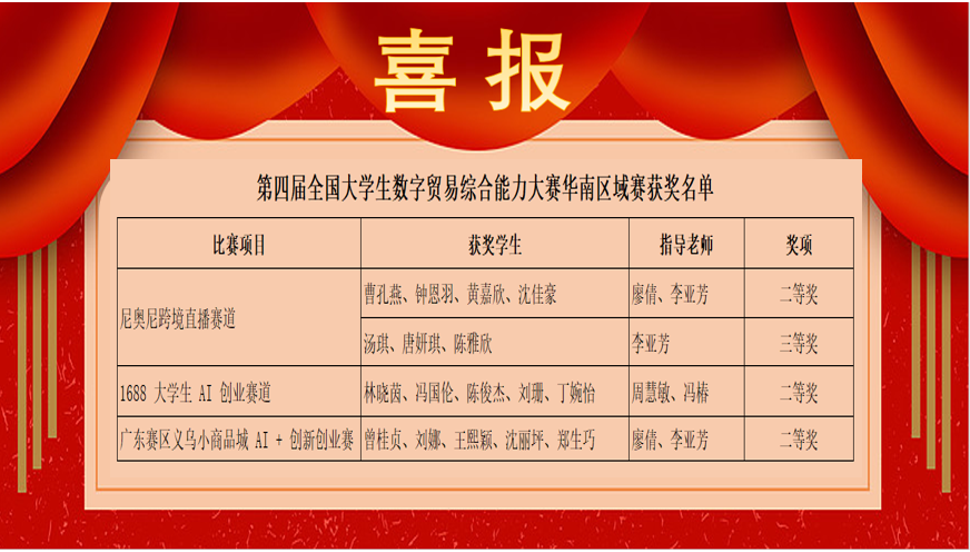 图1 我校在第四届数贸大赛华南区域赛获奖情况