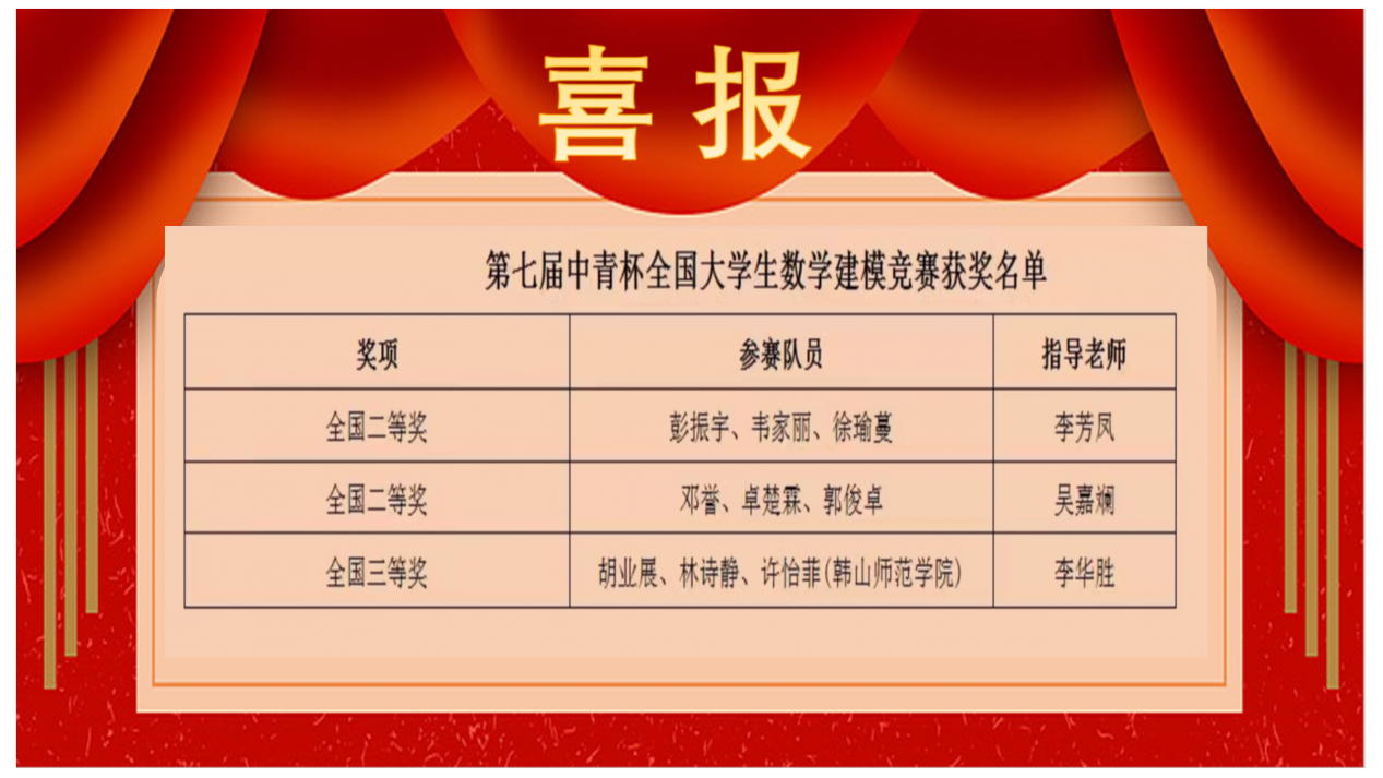 近日,第七届 “中青杯” 全国大学生数学建模竞赛落下帷幕,广州新华学院学子凭借扎实的专业功底、创新的思维能力与高效的团队协作,在众多参赛队伍中脱颖而出,共获全国二等奖2项、三等奖1项。
