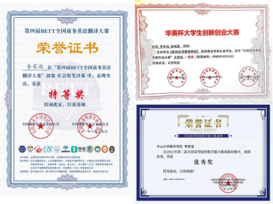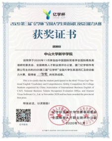 胡婉玲 第三届“亿学杯”全国大学生英语词汇及综合能力大赛省一等奖(左)