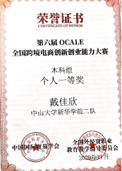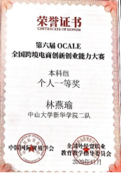 牛婉琪,戴佳欣,林燕瑜 OCALE全国跨境电商创新创业能力大赛一等奖
