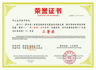 黄俏萍、郭紫莹、汪晓满第四届全国高校经济学综合博弈实验大赛(全国)总决赛二等奖