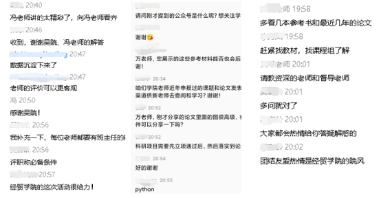 参会的青年教师们反响热烈,一方面从这些具有丰富教学、科研与管理经验的教师们的分享中学习到了工作的技能,帮助他们更快、更好地融入岗位角色和履行岗位职责;更重要的是帮助他们找到了对待学生的“关心、耐心、用心”汇聚成的“丹心”,激励他们在“教师”这一神圣且责任重大的岗位上奋发努力!