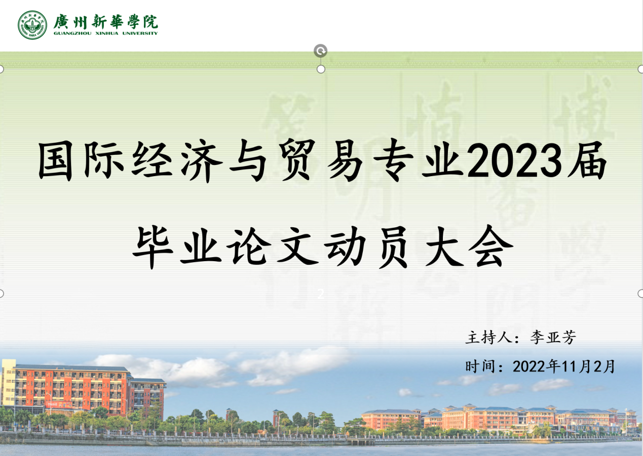10月31日至11月3日,为有效落实2023届学生毕业论文工作,suncitygroup太阳新城以专业为单位,以线上会议方式分别召开6场毕业论文动员大会,2023届全体学生与会。莅临本届毕业论文动员大会的领导与教师有:suncitygroup太阳新城院长袁持平、副院长方建国、副院长黄国龙、副院长吴喜龄及各专业副主任、指导教师等。本次会议由陈佳莉及李亚芳老师主持。