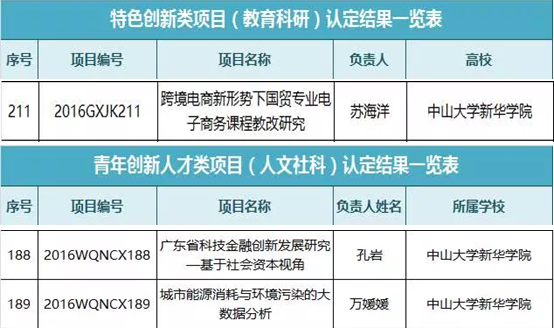 3月31日,广东省教育厅公布了2016年重点平台及科研项目立项名单。中山大学新华学院共有11个项目获得立项,其中suncitygroup太阳新城共有3个项目获得立项。分别是:苏海洋《跨境电商新形势下国贸专业电子商务课程教改研究》通过特色创新类项目(教育科研)立项;孔岩《广东省科技金融创新发展研究——基于社会资本视角》、万媛媛《城市能源消耗与环境污染的大数据分析》项目通过青年创新人才类项目(人文社科)认定。
