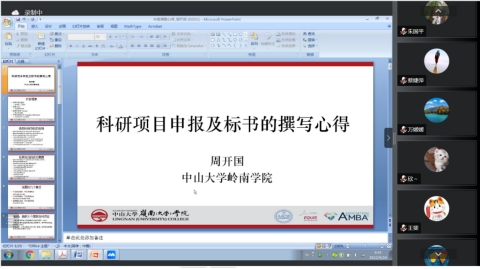 周开国教授首先从项目申报的共性进行分享,用生动的语言为大家传授科研项目的申报经验。他详细地介绍了科研项目的类别,强调选题要有科学意义、学术价值和新颖视角。此外,周开国教授对社科项目申报书的撰写要点进行重点讲解,他表示项目摘要力求全面,不求长篇,背景和意义要紧扣国家战略和前沿,突出理论意义要顶天和现实意义要立地的主旨,关键要提出有待解决的问题。国内外现状要进行文献评述,先肯定性评价,再指出不足,才能突出本研究的价值和边际贡献。对于研究内容,周教授表示研究内容是申报书的核心,申报书要体现出层次感,清晰表达申报项目的逻辑路径、核心要素以及项目特色与创新。最后,教授以自己申报成功三个自然科学基金项目为例,展示项目的关联性和创新要点,建议老师们要做好平常的准备工作:多与同行同事交流经验,多参加相关学术会议,提前做好申报准备。