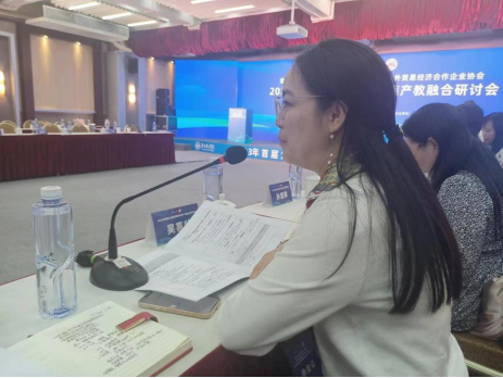 在交流互动环节,我院吴喜龄副院长、廖倩副主任作为代表分别发言,分享我院跨境电商人才培养实践,并表示愿意与其他兄弟院校共同努力,为跨境电商人才培养贡献一份力量。