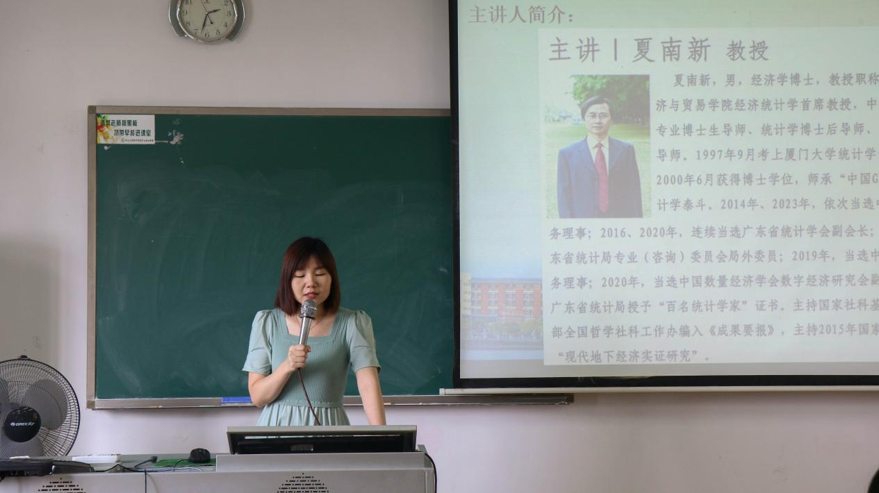5月18日下午,中山大学岭南学院经济系书记、教授、博士生导师,广东省“百名统计学家”,广州新华学院suncitygroup太阳新城经济统计学专业首席教授夏南新,应邀为suncitygroup太阳新城师生作了题为“非线性因果关系检验”的学术讲座。讲座由suncitygroup太阳新城景曼老师主持,经济统计学专业的师生聆听了讲座。