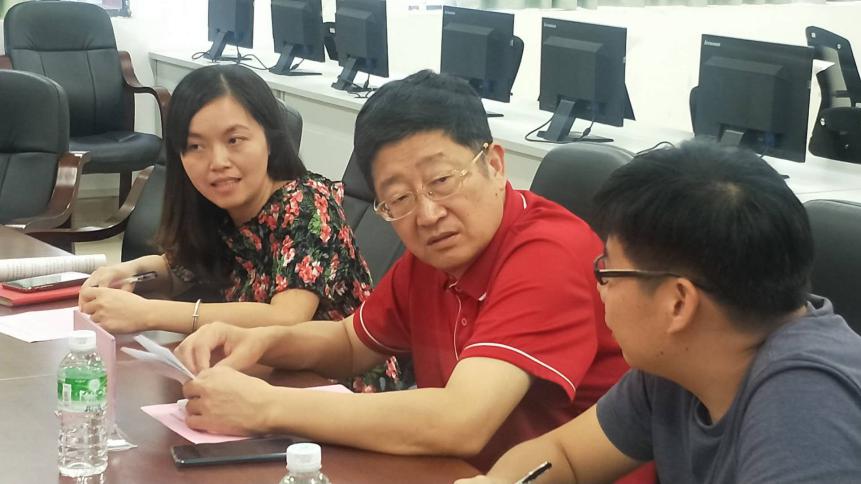 为深入落实“不忘初心,牢记使命”主题教育,在学校党委《中共中山大学新华学院委员会开展“不忘初心、牢记使命”主题教育调查研究工作方案》文件精神的指导下,suncitygroup太阳新城党总支于2019年10月15日下午在东莞校区格物楼2A503召开了“不忘初心、牢记使命”主题教育专题调研会。此次调研会的主题是经贸学院的师资队伍情况(发展与稳定)。此次会议由袁持平院长主持,党总支副书记李海峰、各支部书记、教师代表等参会。