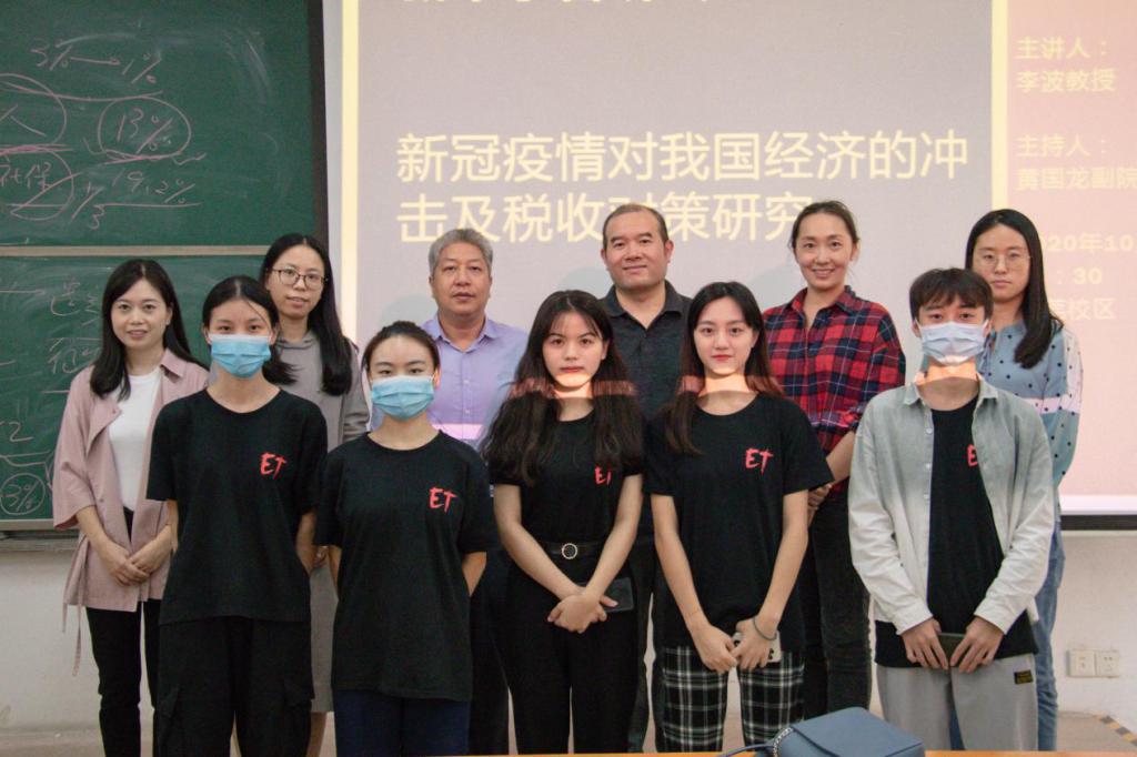 10月21日下午,中国税务学会学术研究委员、中国国际税收研究会理事、湖北省税务学会常务理事、中南财经政法大学税务系博士生导师李波教授,应邀为suncitygroup太阳新城师生作了主题为“新冠疫情对我国经济的冲击及税收对策研究”的学术讲座。讲座由suncitygroup太阳新城副院长黄国龙副教授主持,税收学等专业的教师和学生聆听了讲座。