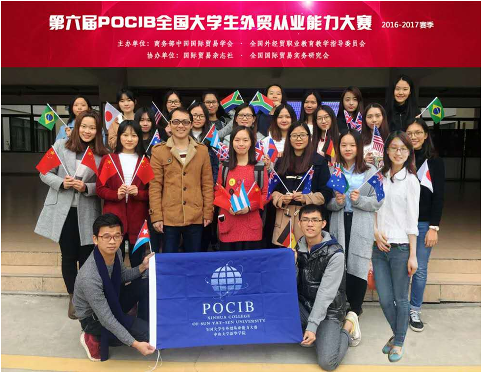 第六届POCIB全国大学生外贸从业能力大赛2016-2017秋季赛历经二十天,于11月29日落下帷幕。来自全国各地共160所本科院校,178支参赛队伍,3560名学生同场竞技参与。中山大学新华学院由2014级国际经济与贸易专业20名同学组成的参赛团队在多所211重点高校中脱颖而出,获得团队特等奖(赛事最高奖项),并获个人一等奖6项,二等奖7项,三等奖6项。经贸系国贸专业副主任吴喜龄,国贸专业教师苏海洋、廖倩以及辅导员黄小润四位老师分别获得指导教师特等奖。此次参赛,我院所获奖项数在参赛高校中居于前列,在此向获奖师生表示热烈祝贺,为他们感到骄傲和自豪。