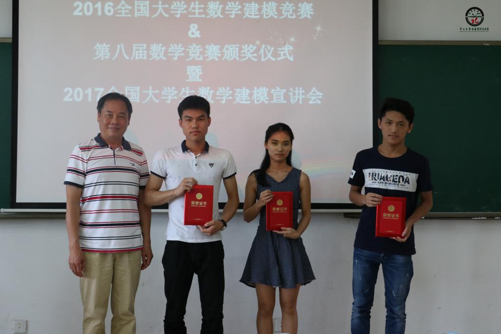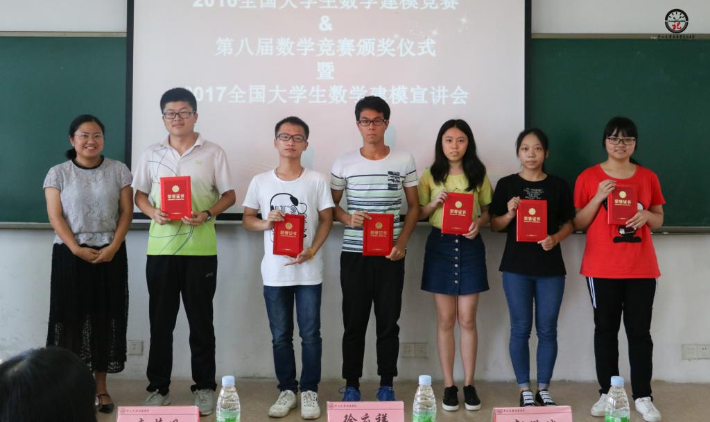 2017年5月31日下午,由中山大学新华学院教务处主办、suncitygroup太阳新城高数教研室承办的2016年全国大学生数学建模竞赛(中山大学新华学院参赛队)、中山大学新华学院第八届数学竞赛颁奖仪式暨2017年全国大学生数学建模竞赛宣讲会在东莞校区定静楼2A205课室正式举行。校教务处尹小川处长等校院领导出席会议,高数教研室徐应祥主任、郭游瑞副主任、经济统计学李芳凤副主任、高数赵志琴老师作为数学建模竞赛教练组老师参加大会,同时参加的还有来自高数教研室何穗智老师、王茂玲老师、任阿娟老师和贾秀娟老师。