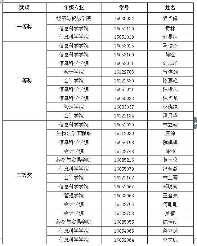随后,教务处尹小川处长、高数教研室徐应祥主任、经济统计学李芳凤副主任、高数教研室何穗智副教授等嘉宾分别为获奖学生颁奖。颁奖过程中,观众以热烈的掌声表达对获奖者的敬佩和自豪。获奖者的每一份收获背后都有辛勤的汗水,他们大方自信地向观众介绍了参赛经历。数学建模的准备工作是十分辛苦的,但是汗水换来的不仅是成功的喜悦、荣誉的奖章,更是无悔的青春、灿烂的大学。