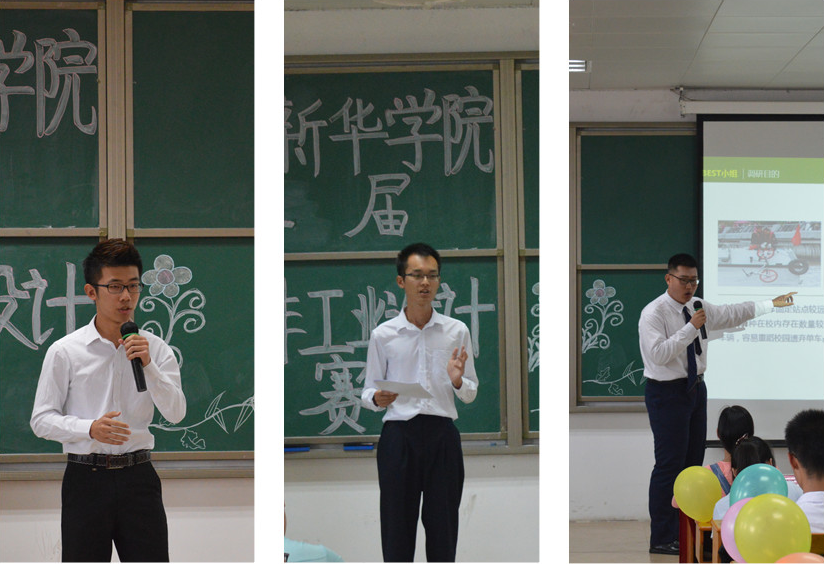 2017年5月17日下午,中山大学新华学院第三届节能减排工业设计大赛总决赛在定静楼②A602成功举办。本场比赛由共青团中山大学新华学院委员会(简称校团委)和共青团中山大学新华学院suncitygroup太阳新城委员会(以下简称院团委)联合主办,suncitygroup太阳新城博易社承办。参加本场大赛的嘉宾及评委有:作品指导老师郑重、蓝舟琳,院团委副书记张志芳,博易社指导老师黄燕娟,经贸学院学生会指导老师冒娟以及博易社社长孙秋珊。