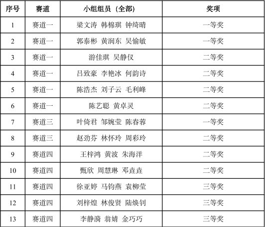 全国总决赛获奖名单(广州新华学院部分)